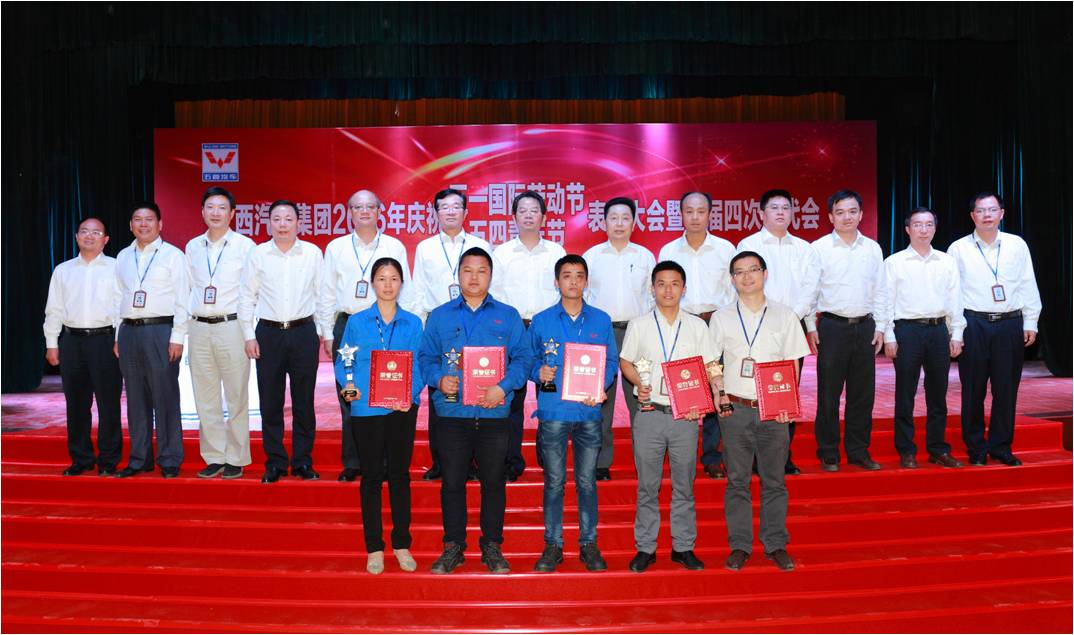 2016年4月28日下午,廣西汽車集團(tuán)2016年五一、五四表彰會(huì)暨三屆四次職代會(huì)在五菱大禮堂舉行,此次大會(huì)表彰了2015年度行政、工會(huì)、團(tuán)委各系統(tǒng)先進(jìn)集體和先進(jìn)個(gè)人。