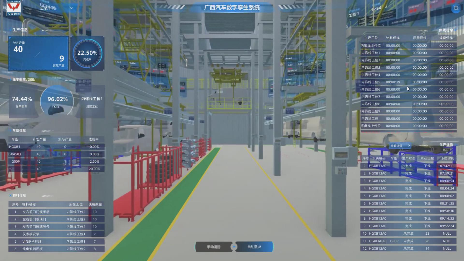 近幾年,廣西汽車集團(tuán)加碼工業(yè)互聯(lián)網(wǎng),用“數(shù)”賦“智”,數(shù)字孿生項(xiàng)目就是其中一個(gè)重要的項(xiàng)目。目前,該項(xiàng)目已經(jīng)實(shí)現(xiàn)了一個(gè)工廠物理仿真應(yīng)用,新能源物流車焊裝、總裝2個(gè)車間物理仿真應(yīng)用,生產(chǎn)線370個(gè)以上數(shù)字孿生模型建模及設(shè)備信號(hào)接入,基于數(shù)字孿生技術(shù)的產(chǎn)品設(shè)計(jì)與仿真、協(xié)同工藝規(guī)劃、能效優(yōu)化分析、車間生產(chǎn)調(diào)度優(yōu)化、生產(chǎn)物流精準(zhǔn)配送等功能。