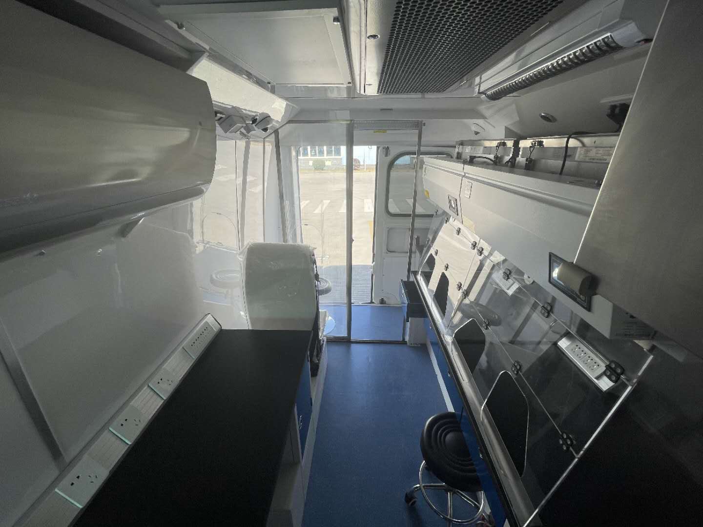 五菱發(fā)熱診療哨點車嚴格按照生物安全實驗室P2+要求進行研發(fā)設計,擁有負壓系統(tǒng)、獨立的樣本傳遞系統(tǒng)、排水系統(tǒng)、獨立空調(diào)、醫(yī)療廢水廢物收納處理系統(tǒng)等,可搭載血常規(guī)檢測儀、POCT(CRP)儀、微型臺式振蕩器、臺式高速離心機等相關(guān)儀器,能實現(xiàn)15分鐘內(nèi)檢測,在關(guān)卡、偏遠地區(qū)等交通不便、設備不齊全等環(huán)境下亦可快速完成檢測。